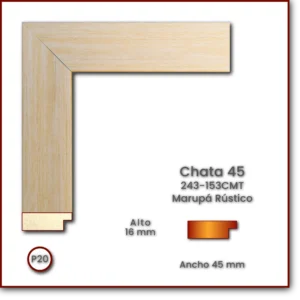 Chata 4516 | Marupá Rústico | 243-153CMT Código: 243-153CMT Descripción: Chata 4516 Medida: Frente: 45 mm Alto: 16 mm Acabado: Marupá Rústico