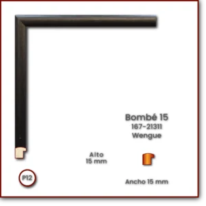 Código: 167-21311 Descripción: Bombé 15 Medida: Frente: 15 mm Alto: 15 mm Acabado: Wengue