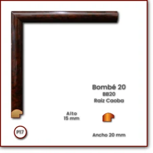 Código: BB20 Descripción: Bombé 20 Medida: Frente: 20 mm Alto: 15 mm Acabado: Raíz Caoba